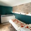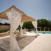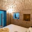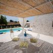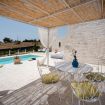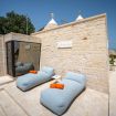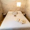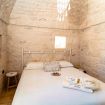 L’abitazione dispone di un soggiorno con cucina dotata di piano a induzione, lavello, frigorifero, fornetto, tavolo con sedie e cassaforte. Le due porte sulla sinistra conducono rispettivamente alla camera da letto matrimoniale con la classica volta a cupola dei Trulli ed al bagno con box doccia. È presente un’altra camera dove poter godere in pieno relax della vasca idromassaggio con cromoterapia, accessibile sia dal bagno che dalla zona esterna. All’esterno la villa è dotata di ampio piazzale in pietra, pergolato con tavolo e sedie da esterno, un grande noce con piccole amaca, una piscina ad uso esclusivo degli ospiti (4m x 8m e 1,3m di profondità), doccia esterna, una zona solarium con 2 lettini prendisole pouff.