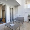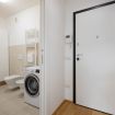 All’interno dell’abitazione è presente un angolo cottura dotato di piastre a induzione, frigorifero, forno, lavello, lavastoviglie, tavolo con sedie e una piccola zona esterna privata dotata di tavolino e sedie da esterno. È inoltre presente un piccolo divano, un letto matrimoniale separato dalla zona giorno da una parete in vetro e un bagno con doccia e lavatrice.