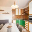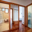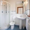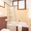 Si accede all’abitazione tramite scala esterna, all’ingresso è presente una piccola zona esterna con tavolo e sedie da esterno riservata agli ospiti. La casa è composta da un soggiorno con divano, tavolo e sedie, una cucina con 4 fornelli a gas, frigorifero, forno, lavastoviglie e tavolo con sedie. Nell’appartamento sono inoltre presenti una camera da letto matrimoniale con bagno con box doccia, un piccolo vano lavanderia con lavatrice, una camera da letto con letti singoli che all’occorrenza possono diventare un letto matrimoniale e un altro bagno con box doccia. L’aria condizionata è presente in soggiorno e nelle due camere da letto.