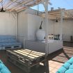 Una scala presente tra la zona living e la camera da letto matrimoniale conduce al secondo piano dove è presente la terrazza privata, perfetta per godere delle serate estive in totale relax. La terrazza de La Suite dispone di una doccia esterna, un lavello e due pergolati, uno dove è sistemato un tavolo con sedie e l’altro dove troviamo un caratteristico salottino da esterno.