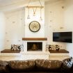 All’interno della casa troviamo un ampio soggiorno con caminetto, divano, TV satellitare e tavolo con sedie. È inoltre presente una cucina interna dotata di frigo, piano a induzione, lavello, lavastoviglie e forno e un vano lavanderia con toilette.