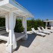 Una larga scalinata conduce alla zona piscina (14mt x 5,20mt x hmax 1,40mt) dotata di pergolato, ampia zona solarium con sdraio e cabanas. Sotto il pergolato troviamo l’ingresso di una piccola dependance dotata di frigo e di un bagno con doccia. Potrete, inoltre, dare il sottofondo che più preferite ai vostri momenti grazie all’impianto stereo a cui potersi collegare con smartphone o pc.